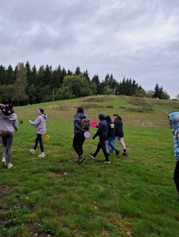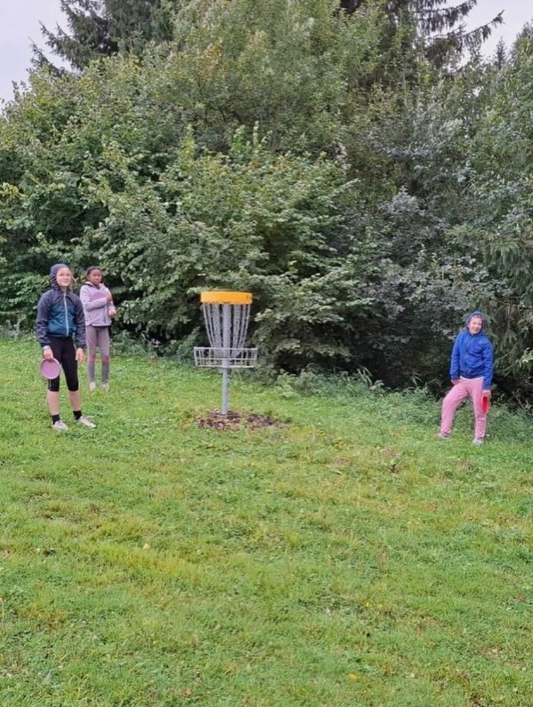 Malgré le froid, les élèves de 1B ont pu s’exercer au Discgolf. Le principe ? Comme au golf, atteindre la cible en moins de coups possible. 🥏
